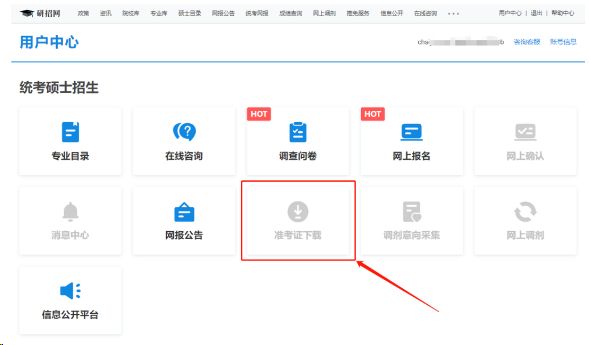 2. "准考证打印":在研招网首页,通常会有“准考证打印”的入口,点击进入。